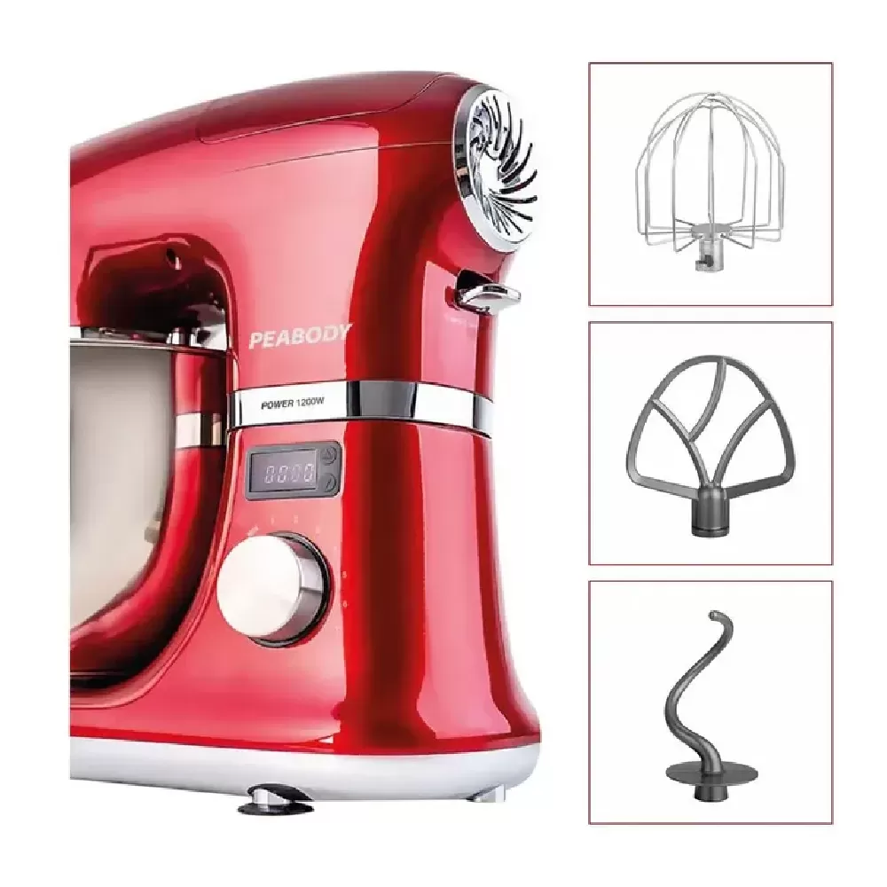 1200W de potencia. 9 velocidades. Incluye 3 accesorios: batidor de alambre, gancho amasador, mezclador. Protector con tapa anti-salpicaduras. Control electrónico de velocidad. Display LCD. Bowl 5 L de acero inoxidable con manija. Timer programable. Pies antideslizantes. (PRECIO CONTADO EFECTIVO) NO INCLUYE ENVIO